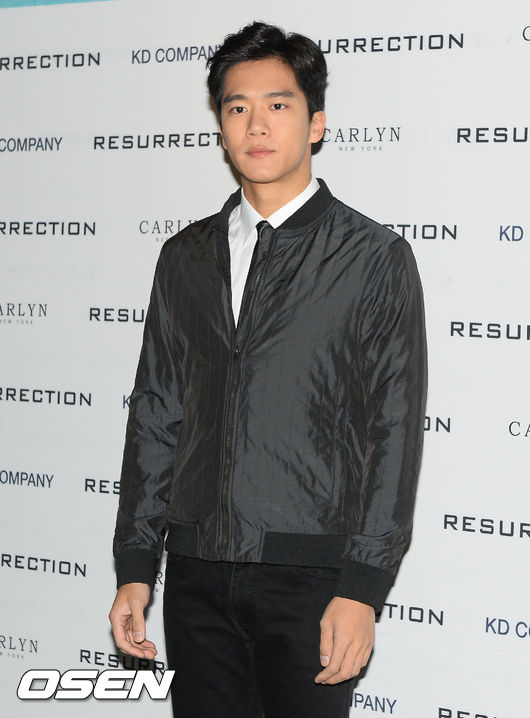 18일 오후 서울 동대문 디자인 플라자에서 열린 '2015 S/S 서울패션위크' 이주영 컬렉션에 참석한 하석진이 포토타임을 하고 있다.