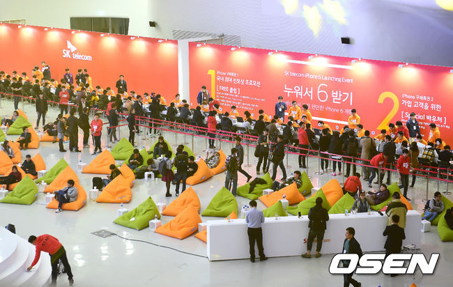 새벽부터 기다린 고객들이 아이폰을 개통하고 있다. / jpnews@osen.co.kr
