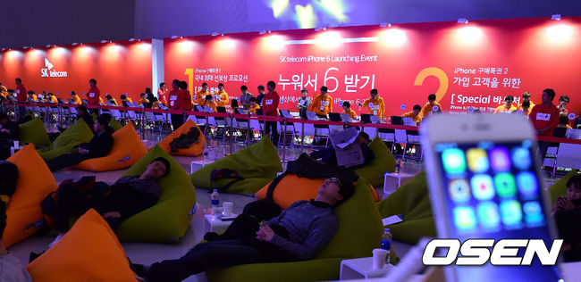 SK텔레콤 아이폰6 개통, '누워서 6받기'
