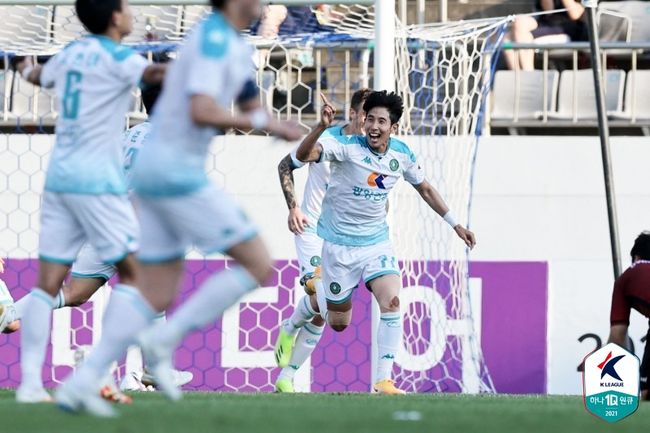 안산은 30일 오후 4시 창원축구센터에서 열린 '하나원큐 K리그2 2021 14라운드’에서 후반 48분 김진래의 극적인 동점골이 터져 경남FC와 1-1로 비겼다. 안산(5승4무4패, 승점 19점)은 5위를 지켰다. 경남(5승3무6패, 승점 18점)은 6위가 됐다.