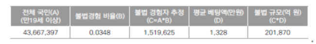 * 추정방식- 사감위 4차 불법도박 실태조사 규모 추정의 모델을 사용