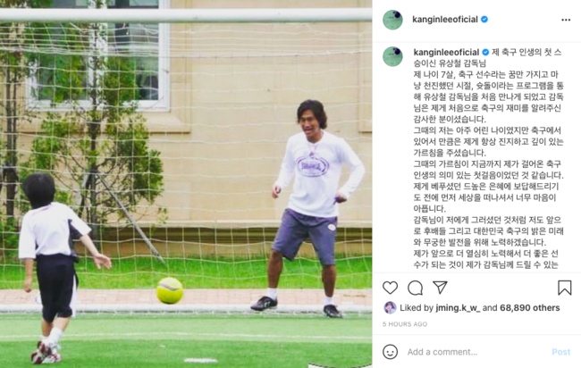 이강인은 자신의 SNS에 장문의 글을 올리며 유상철 감독을 애도했다. 그는 “제 축구 인생의 첫 스승이신 유상철 감독님. 제 나이 7살, 축구 선수라는 꿈만 가지고 마냥 천진했던 시절, 슛돌이라는 프로그램을 통해 유상철 감독님을 처음 만나게 되었고 감독님은 제게 처음으로 축구의 재미를 알려주신 감사한 분이셨습니다”라며 인연을 소개했다.