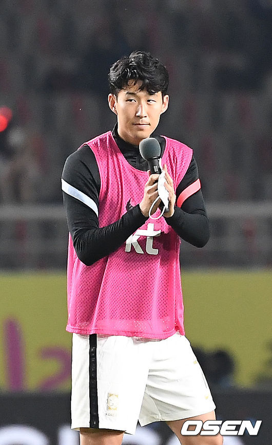 경기 후 대표로 마이크를 잡은 손흥민은 “가까이서 인사를 못드려 죄송하다. 많은 분들이 경기장에 오셨는데 감사하다는 말씀을 드리고 싶다”고 인사했다.