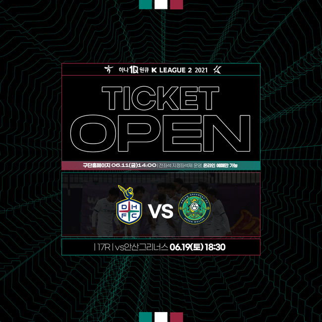 선두 도약의 분수령이 될 안산전 티켓은 6월 11일 금요일 오후 2시부터 온라인(PC, 모바일)을 통해 구단 공식 홈페이지에서 예매할 수 있으며 전 좌석 지정제로 운영된다.