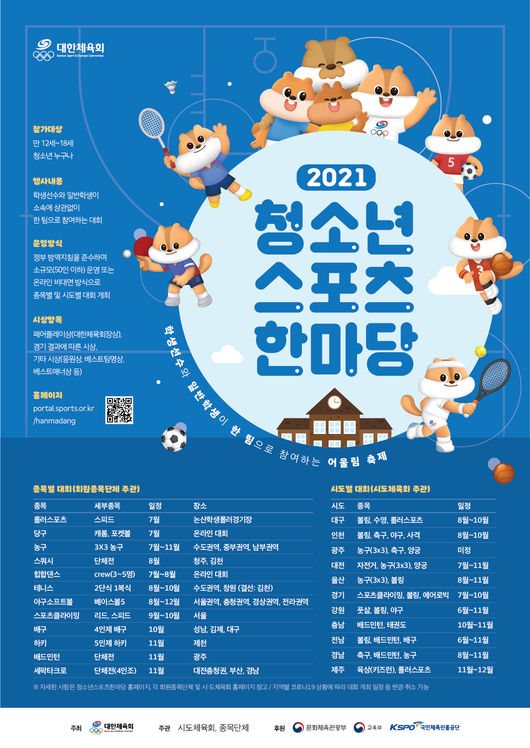 대한체육회는 12일 양구에서 개최된 ‘청소년스포츠한마당 강원도 풋살 대회’를 시작으로 올해 12월까지 각 시·도체육회 및 회원종목단체 주관 2021년 청소년스포츠한마당 대회를 개최한다.