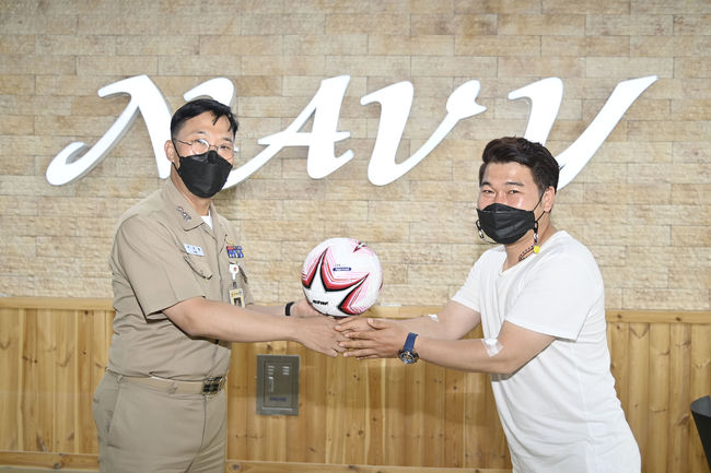 김천상무 주장 심상민이 천안함 재단에 500만 원과 서해수호 최전선 해군 2함대에 50개의 축구공을 기증했다.