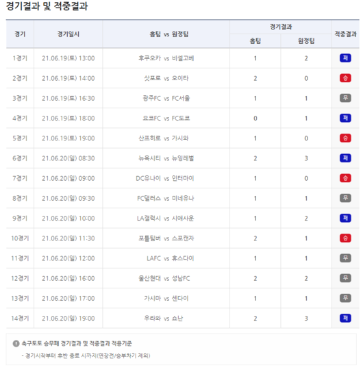 국내∙외 프로축구를 대상으로 하는 이번 회차에서는 K리그1, J리그, MLS 등 다수의 리그가 대상 경기로 지정되었음에도 불구하고, 다수의 참가자들이 적중에 성공했다.
