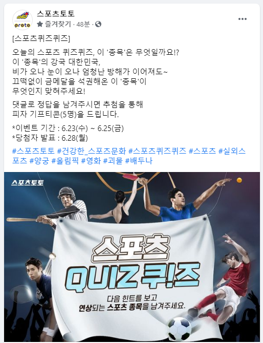 ‘스포츠 연상 퀴즈 맞히고, 피자 기프티콘 받아가세요’
