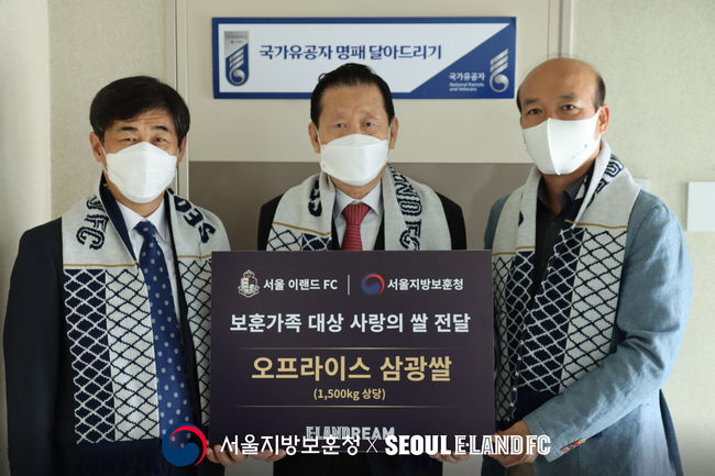 더불어, 서울 이랜드 FC는 호국보훈의 달을 맞아 개최한 27일(일) 홈경기 관중 입장수익금 전액을 기부한다. 기부금은 생활이 어려운 보훈가족에게 1포당 천원씩 결식아동 후원금으로 지원되는 '오프라이스 삼광쌀'을 구매해 전달할 계획이다.