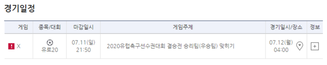 대상 경기인 유로2020은 현재 마지막 세 경기만을 남겨두고 있다. 4강전 두 경기와 결승전이다. 오는 7일(수) 오전 4시에는 이탈리아와 스페인이 경기를 진행하고, 다음날인 8일(목) 오전 4시에는 잉글랜드와 덴마크가 맞대결을 펼친다. 각 조의 승자끼리 진행되는 결승전은 12일(월) 오전 4시에 열린다.