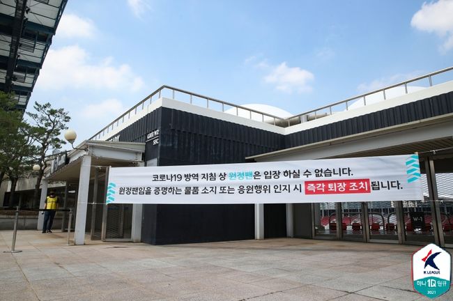 프로축구연맹은 코로나19에 더욱 신경쓰고 있다. 경기장을 찾은 관중들의 육성응원을 금지했다. 또 소요사태 방지를 위해 원정팬 출입금지도 이어지고 있다. 작은 틈도 만들지 않겠다는 의지다.