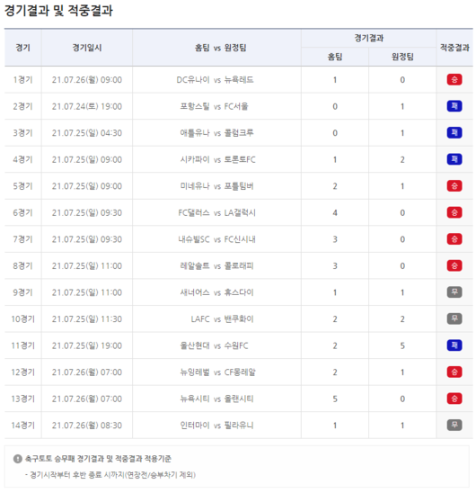 국내∙외 프로축구 14경기 대상 축구토토 승무패 30회차 적중결과