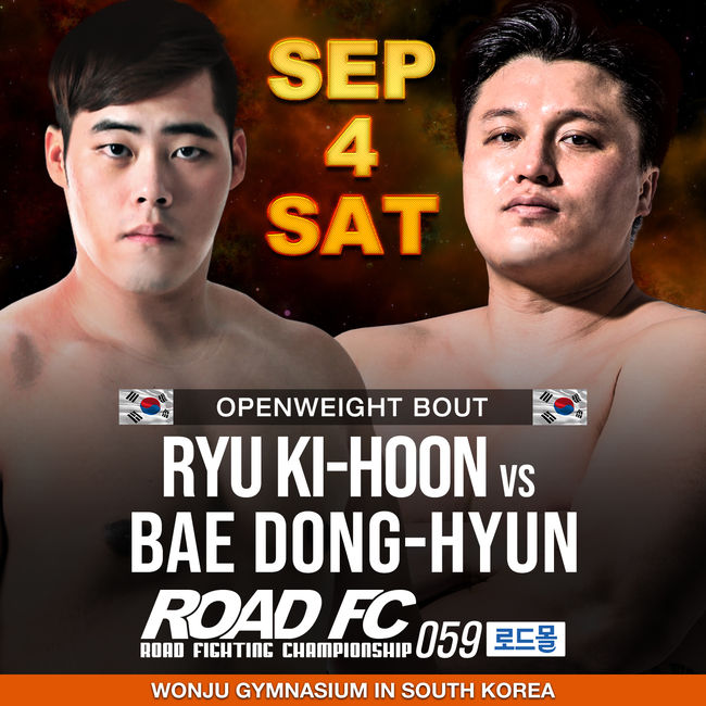 ROAD FC (로드FC)는 9월 4일 원주 종합체육관에서 로드몰 ROAD FC 059를 개최한다.