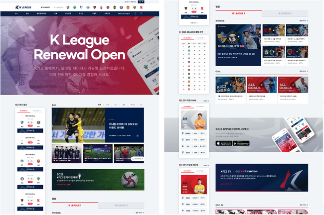 한국프로축구연맹이 K리그 공식 홈페이지를 30일(금) 리뉴얼 오픈하고, 모바일 어플리케이션을 개선했다.