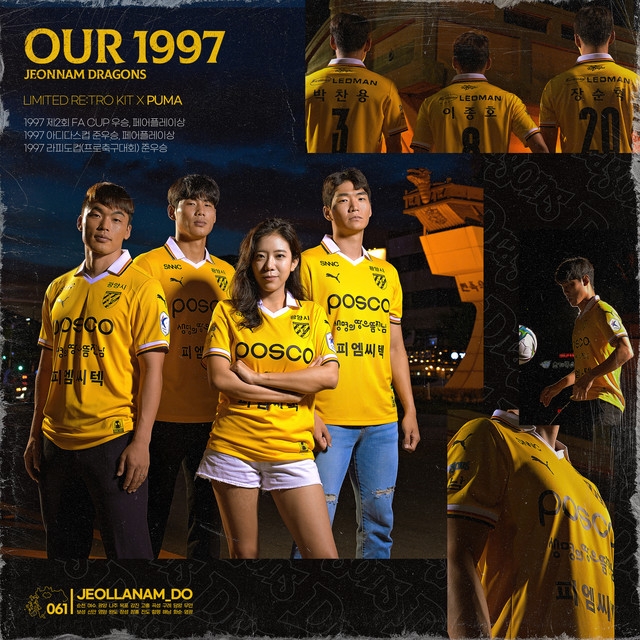전남드래곤즈가 1997년 유니폼을 재해석한 레트로 유니폼을 발표 및 출시했다.