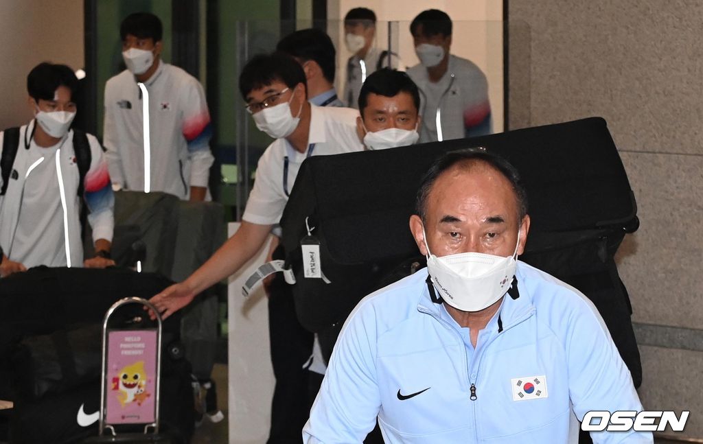 김학범 감독과 황의조(보르도), 이강인(발렌시아) 등 을 포함한 남자 축구대표팀은 어두운 표정으로 입국장에 나타났다. 가장 먼저 모습을 드러낸 김학범 감독에 이어 선수들과 코칭스태프가 뒤를 따랐다. 대표팀은 공항 밖에서 간단히 인사를 나누며 해산했다.