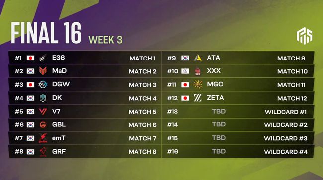 이번 3주차에서는 몇몇 한국 강팀들이 ‘위클리 서바이벌’에서 큰 활약을 펼치지 못했다. 일본 팀들의 약진으로 젠지, 아프리카, T1은 와일드카드전으로 향했다.