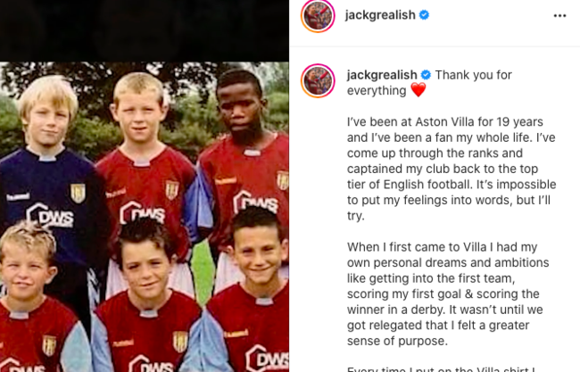 맨체스터 시티 이적이 확정된 잭 그릴리쉬(26)가 전 소속팀 아스톤 빌라 팬들에게 마지막 인사를 했다.
