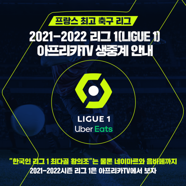 아프리카TV는 오는 7일(토)부터 프랑스 프로축구 리그 ‘2021-2022시즌 리그1(LIGUE 1)’의 생중계 및 VOD 서비스를 제공한다고 밝혔다. ‘리그1(LIGUE 1)’은 프랑스 프로축구 1부 리그로 영국의 프리미어리그, 스페인의 프리메라리가, 이탈리아 세리에A, 독일 분데스리가 등과 함께 유럽 대표 5대 리그로 꼽힌다.