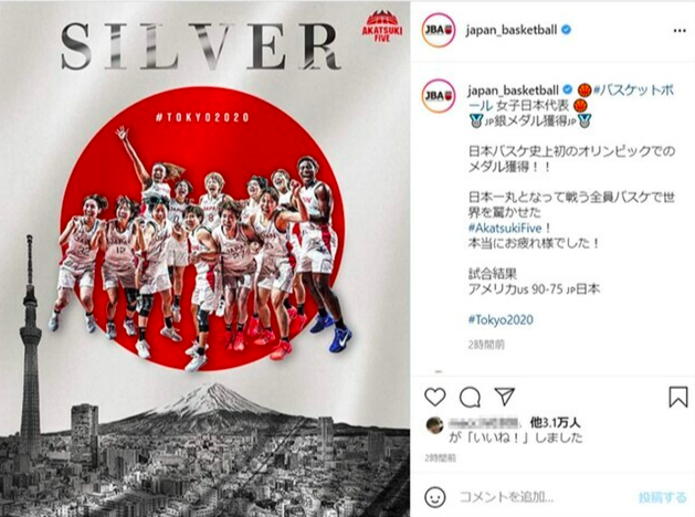 일본여자농구대표팀은 8일 사이타마 슈퍼아레나에서 개최된 ‘2020 도쿄올림픽 여자농구 결승전’에서 미국과 선전 끝에 75-90으로 졌다. 일본은 사상 첫 은메달을 수확했다.
