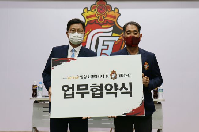경남FC(대표이사 박진관)가 경남 밀양의 랜드마크인 호텔 아리나와 손을 잡았다.