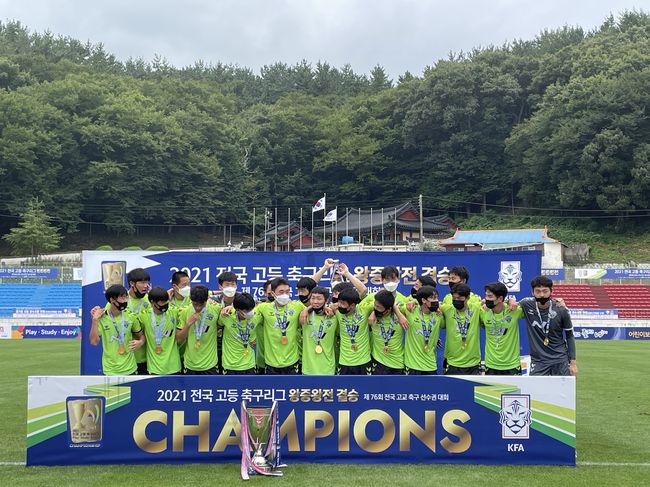 지난 8월 3일부터 남해에서 열린 2021 전국 고등축구리그 왕중왕전 겸 제 76회 전국고교선수권대회에서 엄승민(2골)과 박창우, 김창훈의 연속골에 힘입어 창단 첫 왕중왕전 우승을 차지했다.
