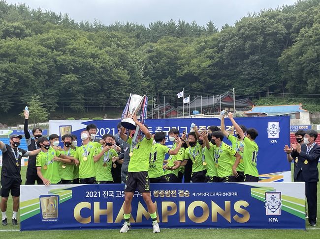 영생고는 13일 남해에서 열린 2021 전국 고등축구리그 왕중왕전 겸 제76회 전국고교선수권대회 결승에서 수원 삼성 유스 매탄고를 4-1로 꺾었다.