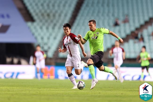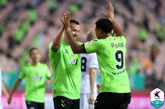 결국 자신감은 추가골로 이어졌다. 구스타보는 전반 19분 이유현이 왼발로 올린 크로스를 헤딩골로 연결해 시즌 7호골을 기록했다. 구스타보는 전반 37분과 44분에도 골이나 다름없는 위협적인 장면을 연출했다.