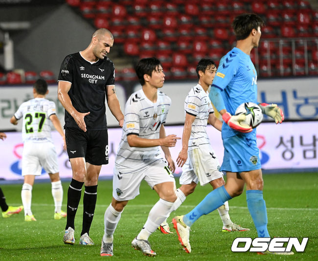 결국 두 팀은 우천혈전에서 골맛을 보지 못하고 0-0으로 비겼다. 지난 경기서 전북에 1-5 완패를 당했던 성남은 승점 1점에 만족했다. / jasonseo34@osen.co.kr