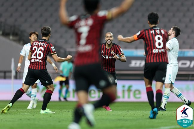 FC서울이 22일 하나원큐 K리그1 2021 26라운드 홈 경기에서 10명이 싸운 포항 스틸러스와 2-2 무승부에 그쳤다.