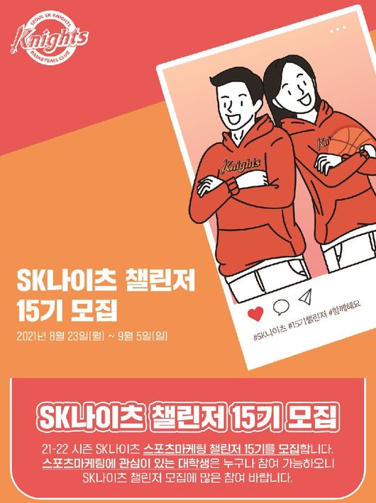 서울 SK 나이츠가 2021-2022시즌에 활동할 제15기 서울 SK나이츠 챌린저를 공개 모집한다.