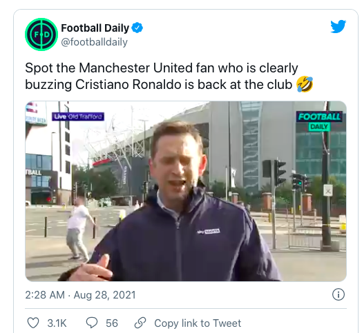 ‘레전드’ 호날두의 복귀가 확정되자 맨유 팬들은 난리가 났다. ‘풋볼 데일리’는 맨유 홈구장 올드 트래퍼드에서 팬들을 인터뷰했다. 벌써부터 팬들이 호날두의 ‘호우 세리머니’를 펼치면서 호날두의 복귀를 환영하고 있다.
