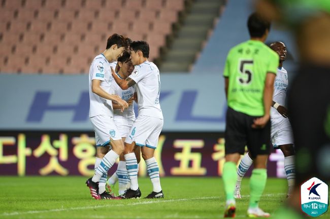 포항 스틸러스는 1일 전주월드컵경기장에서 하나원큐 K리그 1 2021 20라운드 순연경경기서 전북 현대에 1-0으로 승리했다.