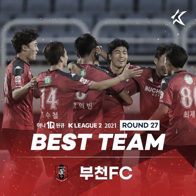 한국프로축구연맹은 ‘하나원큐 K리그2 2021’ 27라운드 베스트 팀에 부천, 베스트 매치를 부천과 대전의 경기로 선정했음을 밝혔으며 27라운드 MVP는 이시헌이, 베스트11에는 이시헌, 박창준과 김정호가 이름을 올렸다.