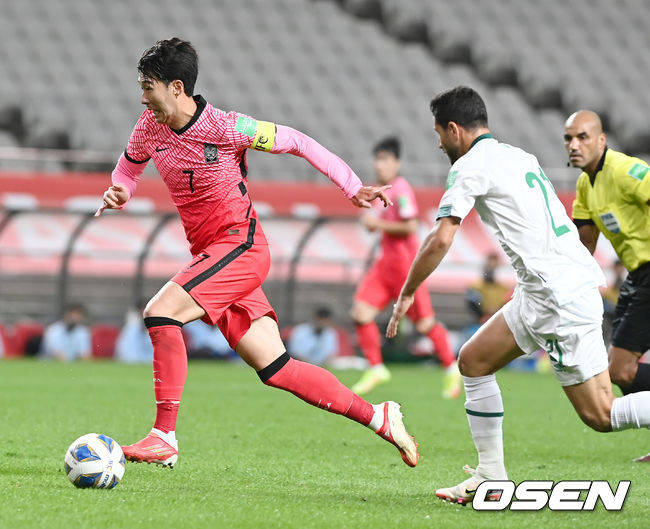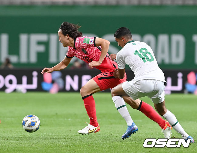 이라크는 역습을 통해 한국의 뒷 공간을 노렸으나 김민재가 존재감 있는 모습으로 계속 차단했다. 전반 8분 황의조가 박스 안의 손흥민을 보고 크로스를 시도했으나 상대 골키퍼의 선방에 막혔다.