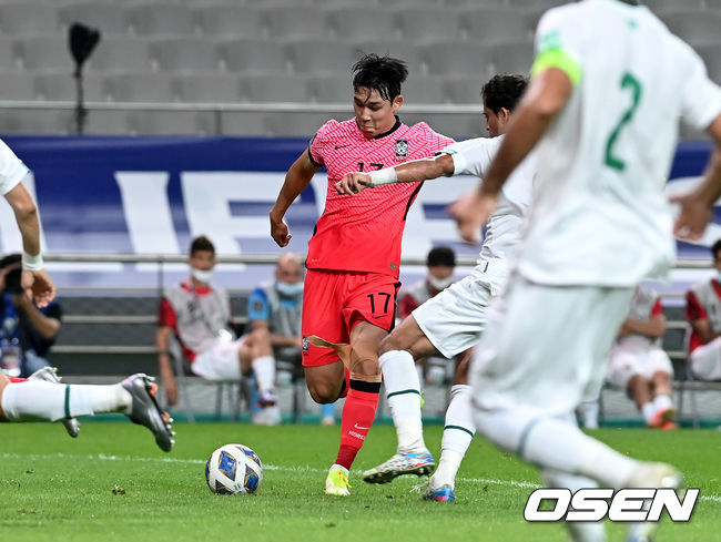 전반 15분 황인범이 기가 막힌 패스를 중앙으로 전했다. 이어 이재성이 상대와 볼 경합 이후 정확한 패스로 손흥민에게 오픈 찬사를 내줬으나 바로 때리지 않았아서 기회가 무산됐다