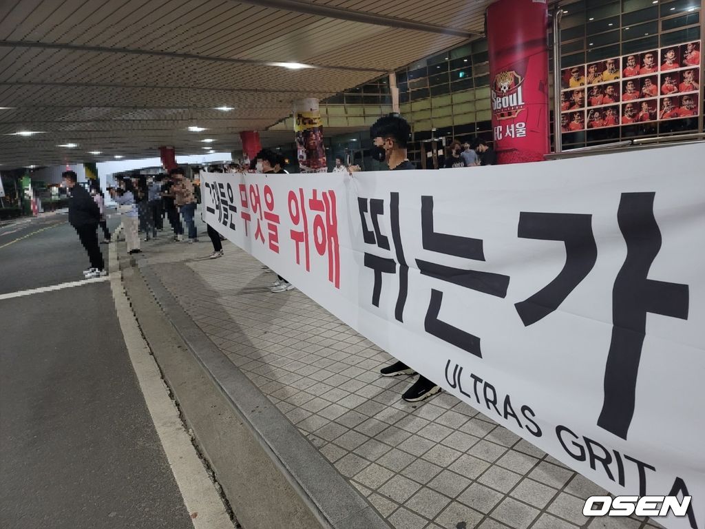 이날 걸린 걸개 속에는 팬들의 소리 없는 절규가 가득 차 있었다. 퇴근길에 팬들의 걸개를 본 서울 선수단은 어떤 생각이 들었을까.