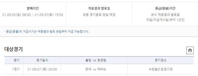 2022 카타르 월드컵 아시아지역 최종예선 조별리그 A조 2차전, 대한민국-레바논전 대상 축구 매치 12회차 발매