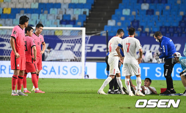레바논은 본격적인 침대축구를 전반 12분 시작했다. 공중볼 경합 중 넘어졌다는 이유로 수비수 카셈 엘 제인은 좀처럼 일어나지 않았다. 또 그는 한국 코너킥 상황에서 김민재와 신경전을 펼쳤다. 일반적으로 일어날 수 있는 상황이었지만 그는 심판에게 2차례 주의를 받을 정도로 무리한 모습을 보였다.