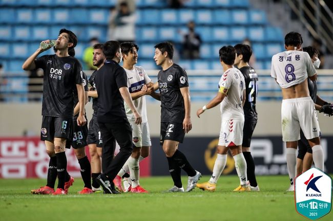 수원FC는 25일 DGB 대구은행파크에서 개최된 ‘하나원큐 K리그1 2021 32라운드’에서 홈팀 대구FC와 0-0으로 비겼다. 승점 48점의 대구가 3위, 승점 45점의 수원FC가 4위를 유지했다.
