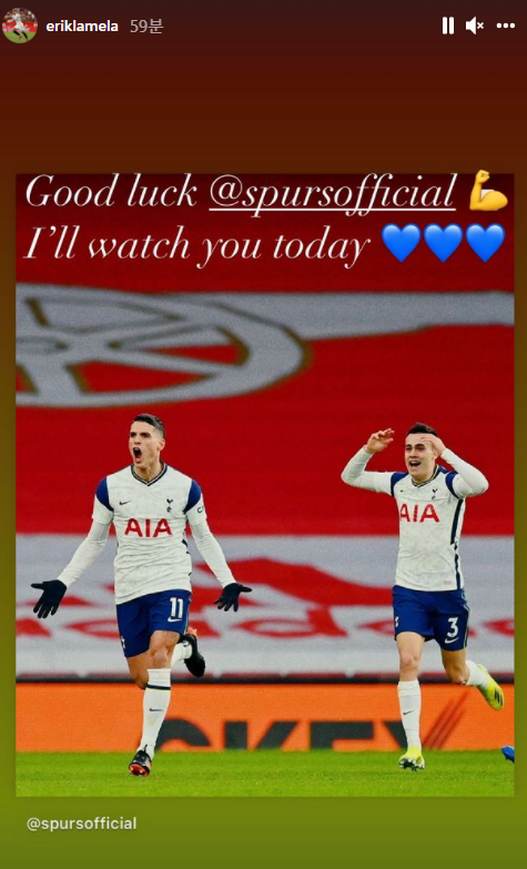 에릭 라멜라는 26일(한국시간) 자신의 SNS를 통해 전 소속팀인 토트넘에 대한 응원의 메시지를 남겨 화제를 모으고 있다.