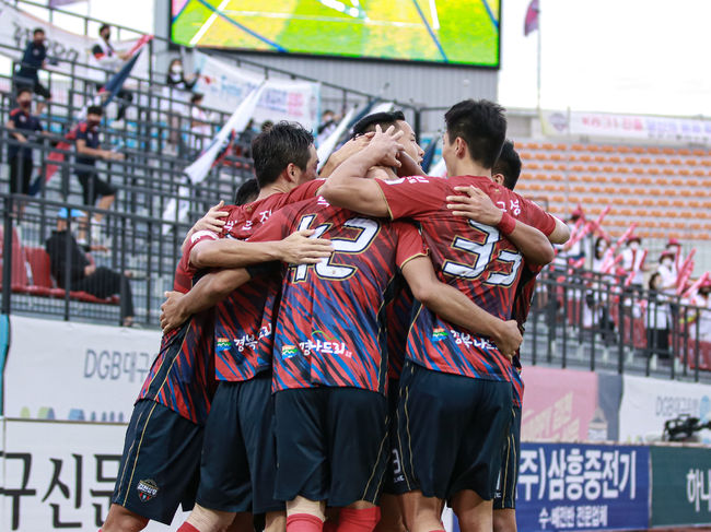 김천상무프로축구단이 26일 오후 4시 김천종합운동장에서 열린 ‘하나원큐 K리그2 2021’ 31R 대전하나시티즌과 홈경기에서 후반 31분 터진 박지수의 결승골에 힘입어 2-1 승리를 거뒀다.