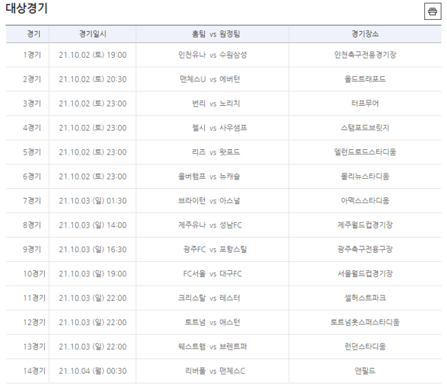 K리그1 및 EPL 등 14경기 대상 축구토토 승무패 맞히기