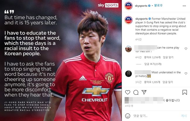 네티즌들은 "시대가 변했다면 바뀌어야 한다", "여전히 아시아인에 대한 편견이 가득하다" 등의 반응을 보였다. 또 박지성에 대한 그리움도 숨기지 않았다.
