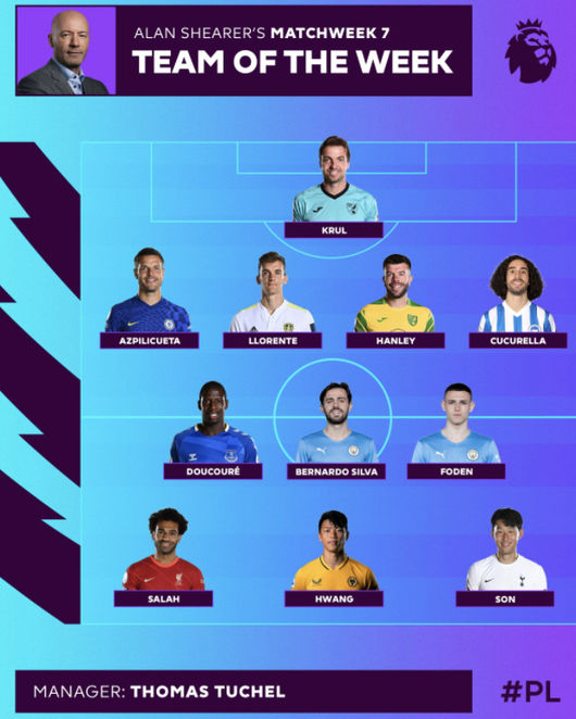 프리미어리그는 4일(이하 한국시간) 공식 홈페이지를 통해 앨런 시어라거 선정한 2021-2022 프리미어리그 7라운드 베스트 11을 선정했다.