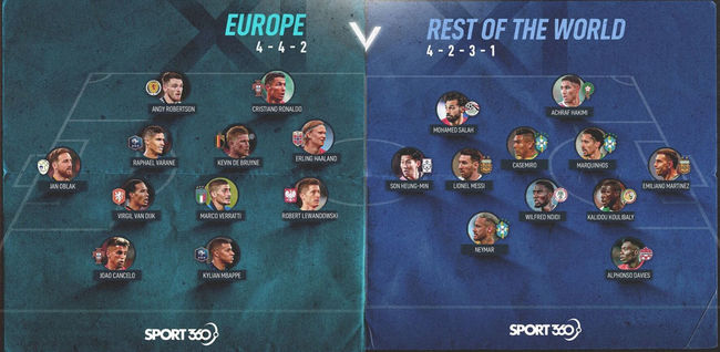 유럽베스트11에는 엘링 홀란드(노르웨이)와 로베르트 레반도프스키(폴란드)를 투톱으로 크리스티아노 호날두(포르투갈), 케빈 데 브라위너(벨기에), 마르코 벨라티(이탈리아), 킬리안 음베파(프랑스), 앤디 로버트슨(스코틀랜드), 라파엘 바란(프랑스), 버질 반다이크(네덜란드), 후앙 칸셀루(포르투갈), 얀 오블락(슬로베니아)가 뽑혔다. / jasonseo34@osen.co.kr