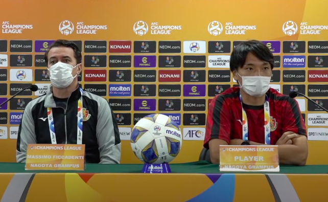 나고야는 18일 오후 2시 전주월드컵경기장에서 포항을 상대로 ‘2021 AFC 챔피언스리그 8강전’을 치른다. 결전을 하루 앞두고 공식기자회견에 마시모 피카덴티 감독과 나카타니 신노스케 선수가 참석했다.
