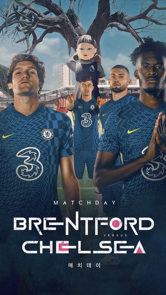 첫 번째 포스터는 경기 일정 및 상대를 알려주는 매치데이 포스터였다. 첼시는 마르코스 알론소, 카이 하베르츠, 마테오 코바치치 등이 '오징어 게임' 속 ‘무궁화 꽃이 피었습니다’를 넣었다. 또 한국어로 '매치데이'라고 적었다.