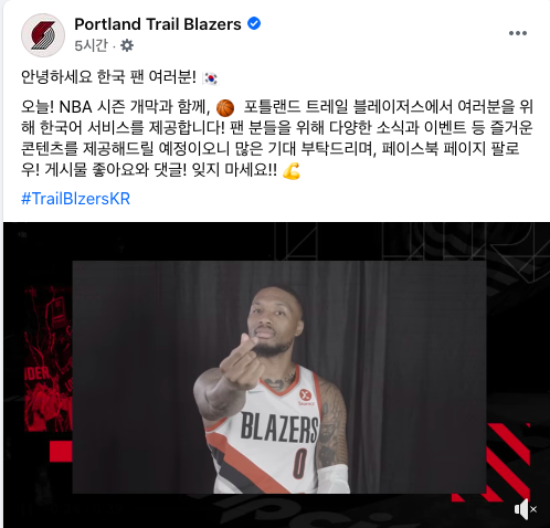 포틀랜드 트레일 블레이저스는 NBA 구단 최초로 한국어 공식SNS 페이지를 개설했다. 포틀랜드는 지난 2004년 ‘한국선수 최초 NBA선수’ 하승진이 입단했던 구단이다. 현재 포틀랜드에 한국선수가 없다는 점을 고려할 때 구단의 한국어 계정 서비스와 마케팅은 매우 파격적인 행보다.
