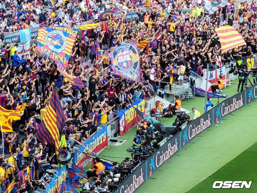 바르셀로나는 지난해 10월 메시의 마지막 엘 클라시코에서도 홈구장에서 레알 마드리드에게 1-3으로 완패를 당했다. 바르셀로나 팬들은 이번 만큼은 질 수 없다는 듯 비장하게 응원을 펼쳤다. 육성응원 금지는 없었다. 많은 팬들이 그래도 마스크를 착용했지만 경기장에서 엄청난 응원을 펼쳤다. 옆좌석의 사람들도 제대로 대화를 하기 어려울 정도로 소리가 컸다. 1층부터 9층까지 모든 경기장의 좌석이 꽉꽉 찼다.